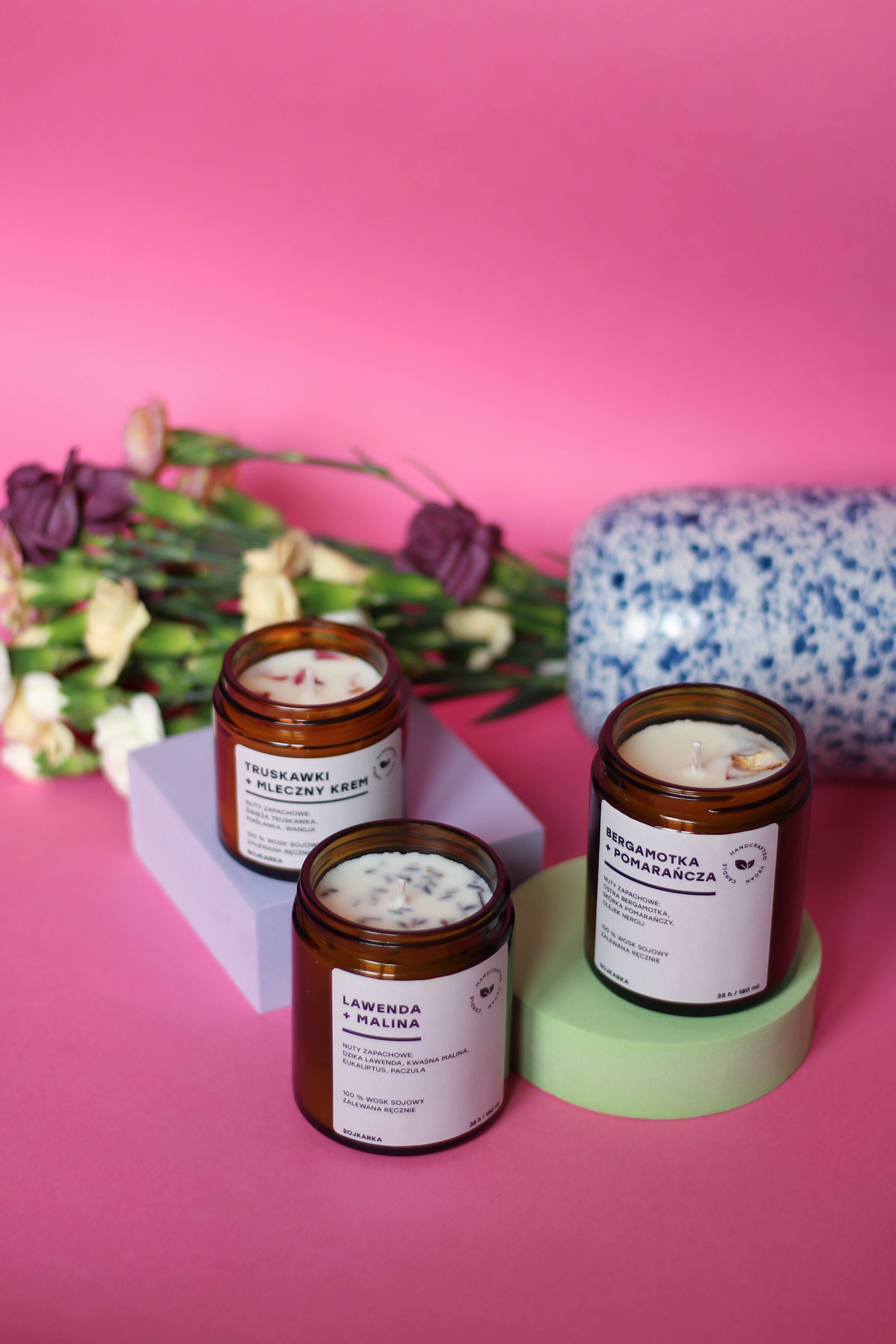 Świece dostępne są w trzech pojemnościach do wyboru: 120 ml, 180 ml oraz 250 ml.