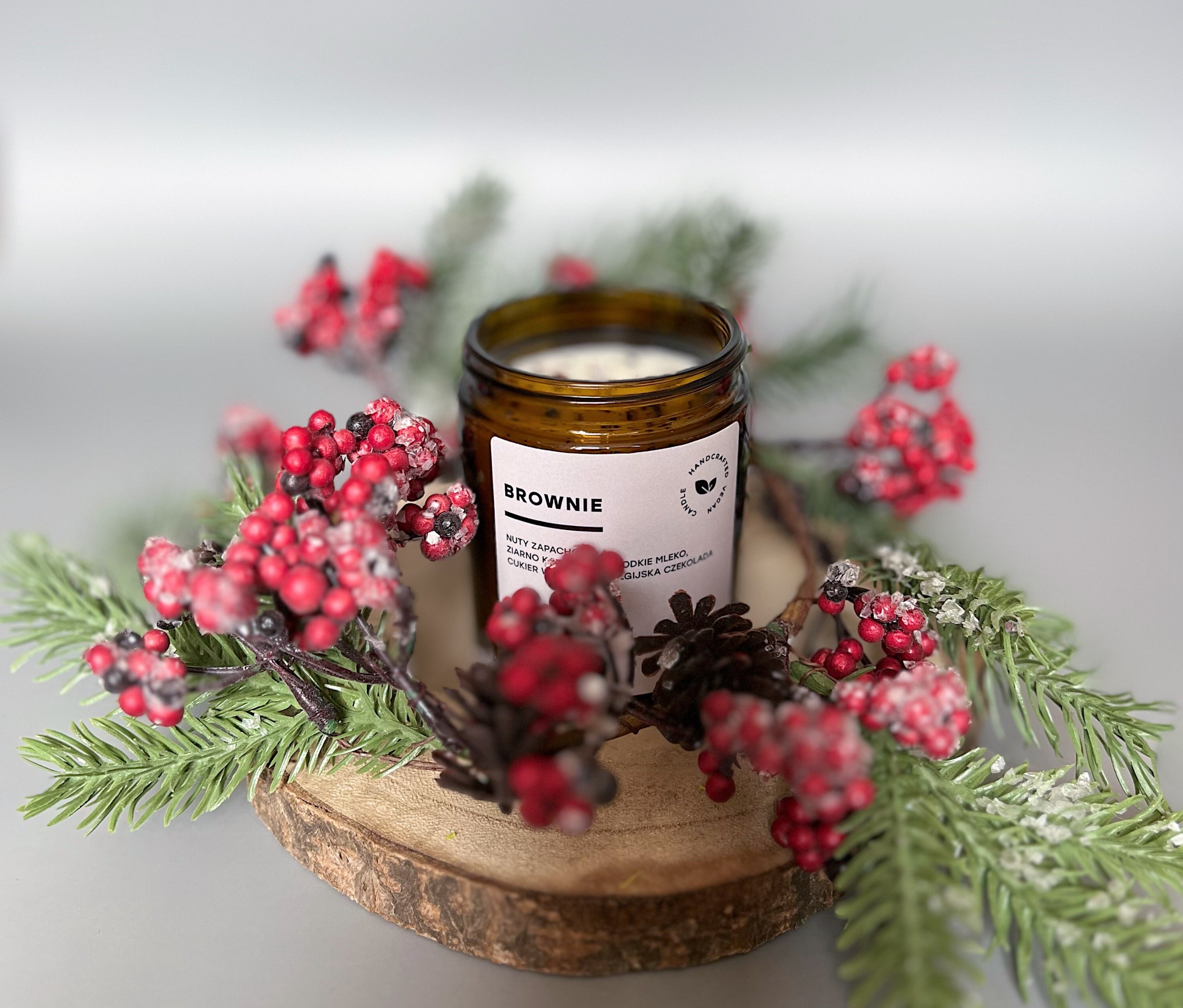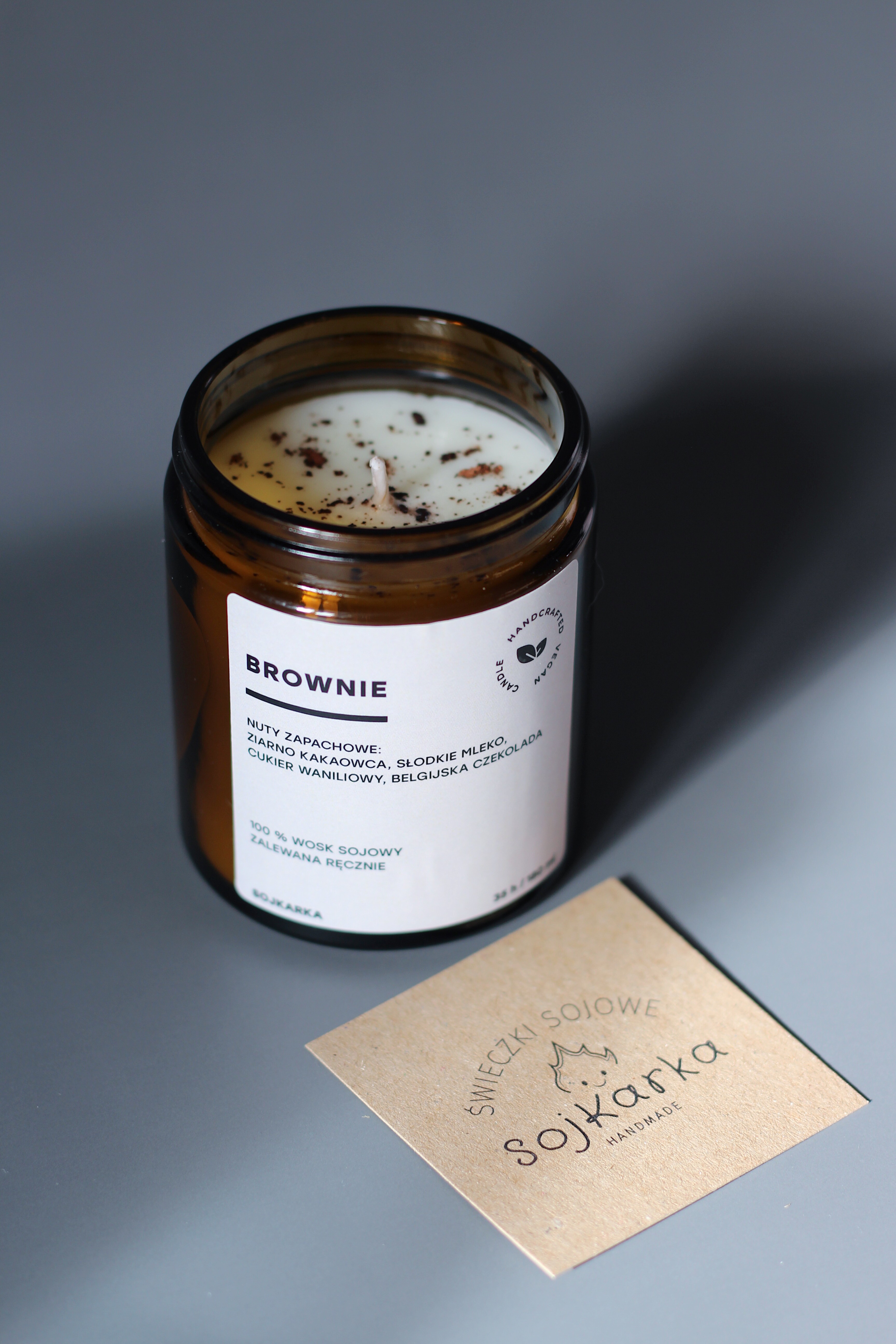 Nuty zapachowe: Świeca Brownie zachwyca wyjątkową kompozycją zapachową, która przenosi Cię wprost do słodkiego świata przyjemności. W sercu tej mieszanki znajduje się aromatyczne ziarno kakaowca, które łączy się z delikatnym, słodkim mlekiem, tworząc aksamitny efekt. Cukier waniliowy dodaje subtelnej słodyczy, a belgijska czekolada wprowadza intensywny, czekoladowy aromat, który rozpieszcza zmysły.