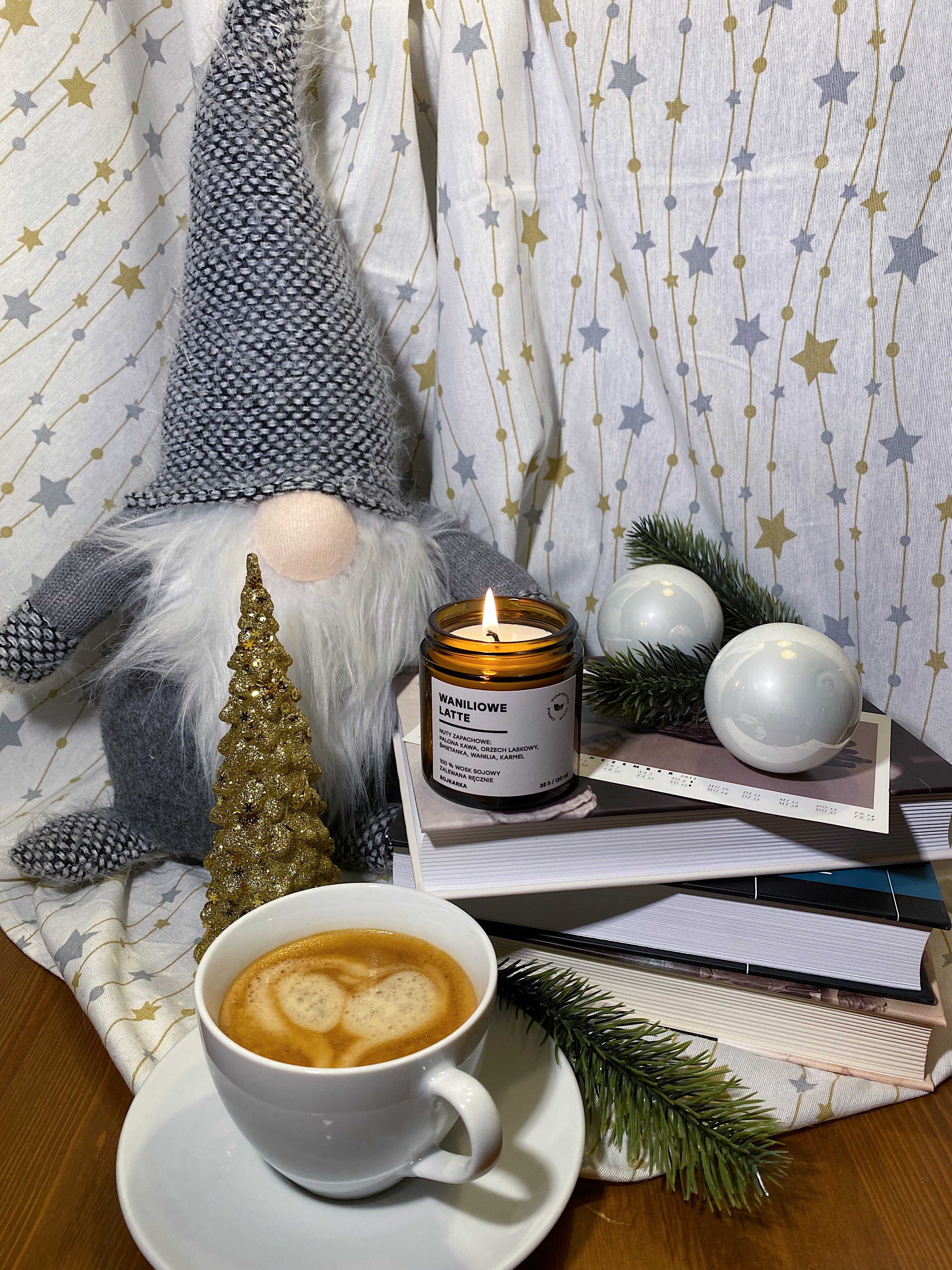 Nuty zapachowe: Świeca Waniliowe Latte pobudza zmysły i tworzy przytulną atmosferę. Intensywna palona kawa wprowadza energię i głębię, a orzech laskowy dodaje nuty chrupkości i orzechowego aromatu. Delikatna śmietanka i słodka wanilia łagodzą całość, tworząc aksamitne doznania, podczas gdy karmel wprowadza słodką nutę, która doskonale dopełnia tę harmonijną mieszankę.